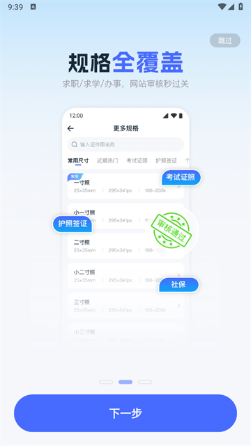 规格齐全:提供超全的证件照规格供用户选择,满足各种场景需求。