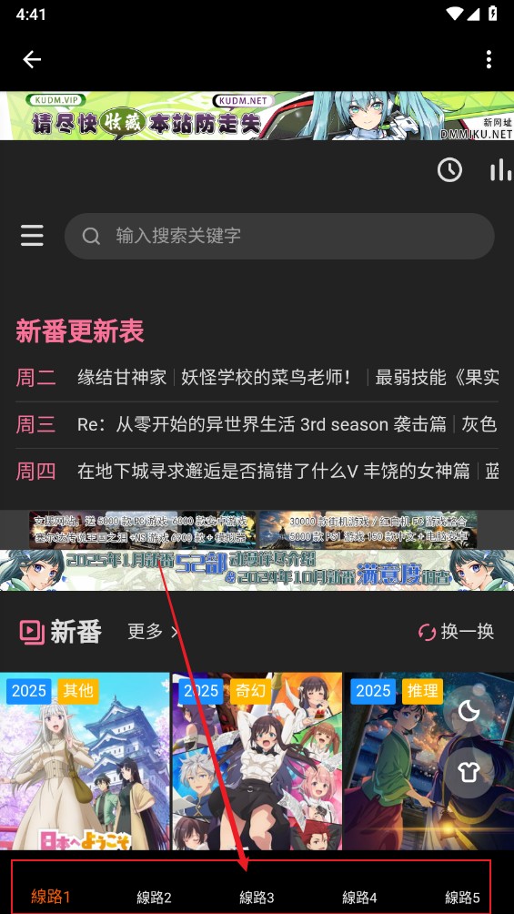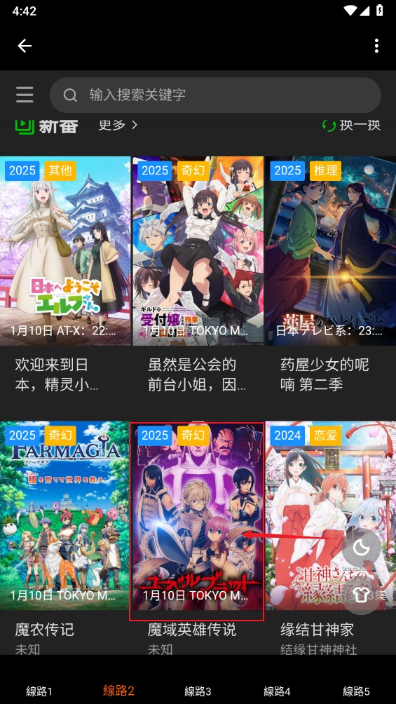 1、先在本站下载安装软件,进入主页,涵盖了多个线路的动漫资源。