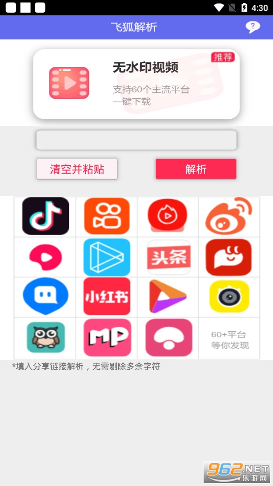 2、操作上比较的简单,只要粘贴链接地址,就可以快速的去除视频水印并保存