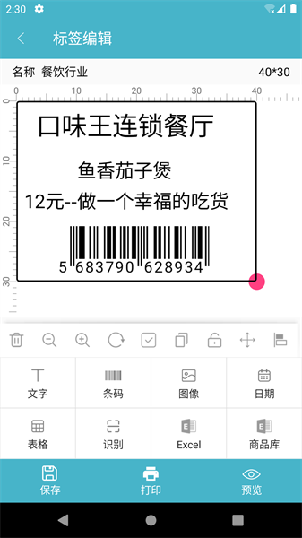 1、支持条码、文本、二维码等内容编辑。