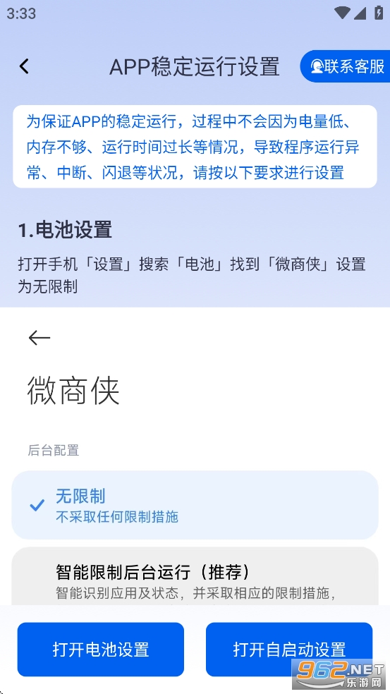 3、检查权限设置:确保微商侠具有必要的权限,特别是网络权限。在应用管理设置中检查并开启相应权限。