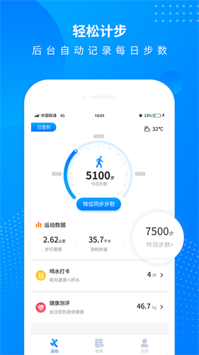 2.计步器帮你准确地记录每天步数,准确测量卡路里消耗。