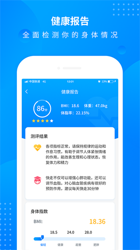 4.体重、BMI指数记录,查看一周、一个月等跑步健身后体重的变化。