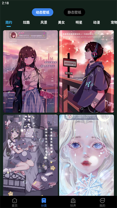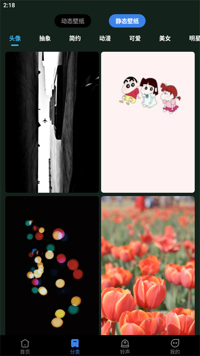 4、在分类功能列表中还可以点击静态壁纸选项进行更多的分类筛选,让你获得更多精彩好看的壁纸。