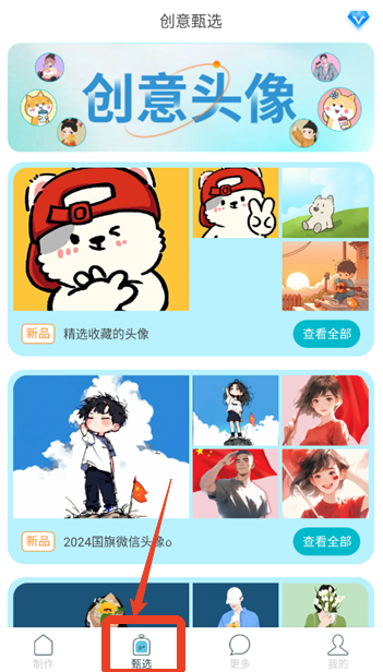 2、点击下方的甄选”还有各种创意头像让用户使用。