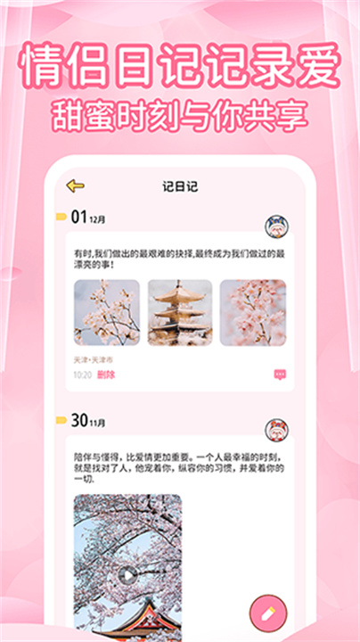 甜蜜纪念:专为情侣设计的恋爱天数记录功能,记录相遇的每一天。