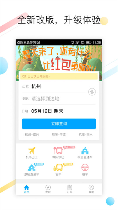 巴巴快巴订票主要功能
