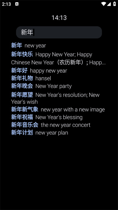 2. 等待系统自动显示相关的单词和中文翻译。