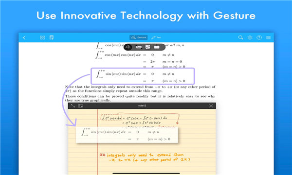 您不需要运用苹果系统的手势操作和工具栏。您可以通过Flexcil自定义的笔触手势操作做笔记、选择、编辑文本以及图片。