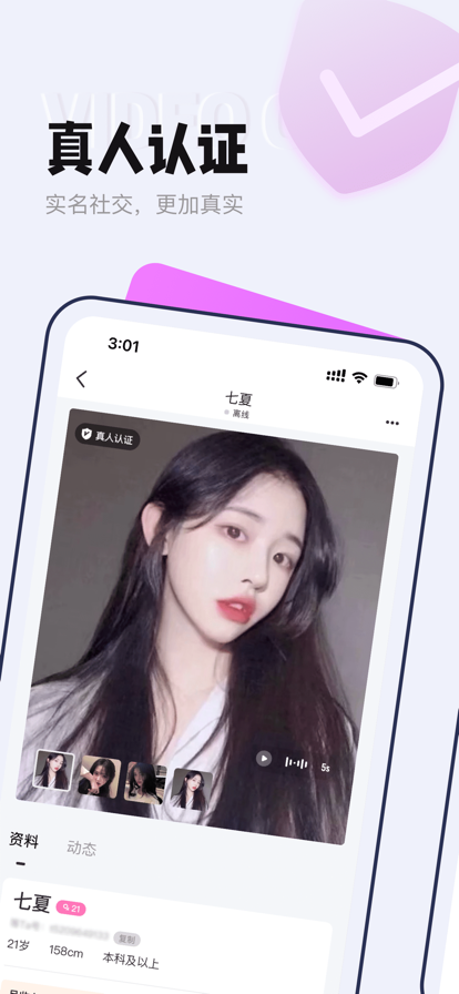 【真人认证】:用户信息实名认证,真实可靠拒绝照骗,绿色交友靠谱放心~