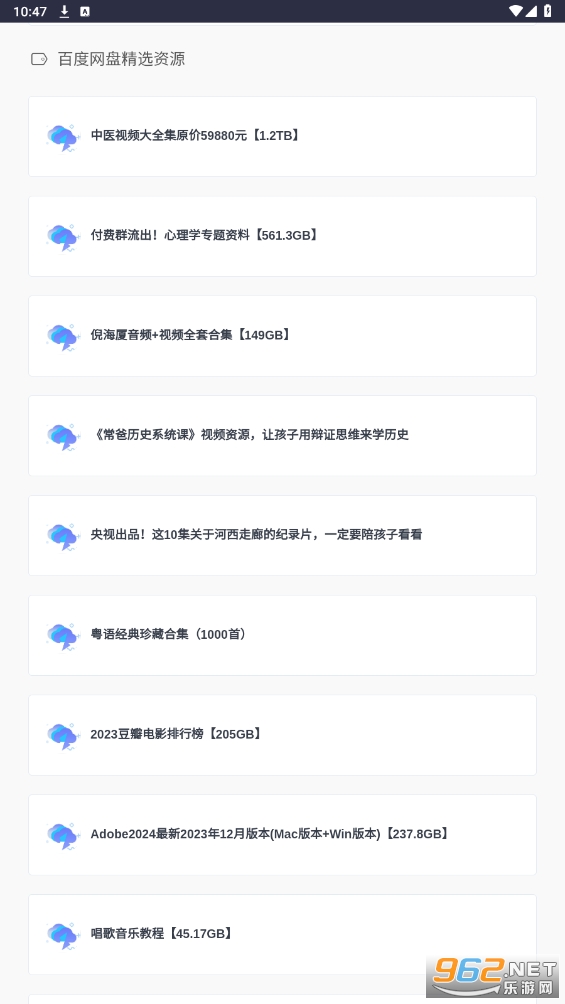多网盘支持:该app不仅支持常见的网盘服务,还能搜索到许多小众网盘的资源,为用户提供了更广泛的资源选择。