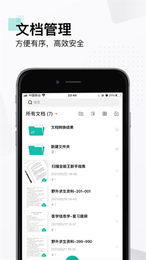 手机拍纸质文档,智能去除杂乱背景,生成高清JPEG、PDF文件。默认自动扫描,对准纸质文档自动拍照,解放双手。