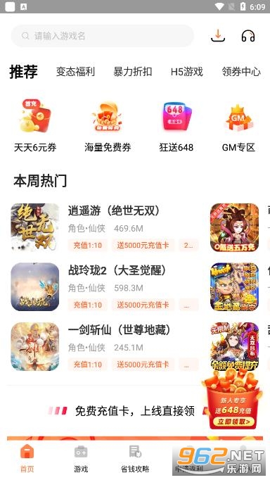 1、热门手游,超低折扣限购,每天更有0元商品限时抢购