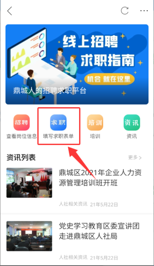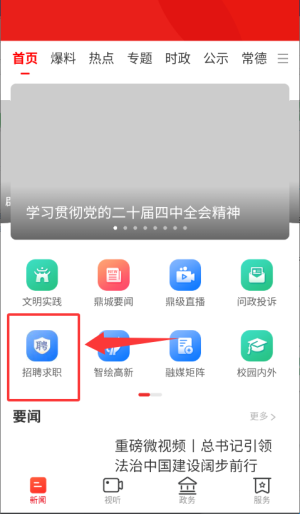 2、于主界面选择"招聘求职"板块,进入相关服务页面。