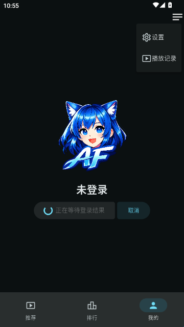 7、登录过程中会提示“正在等待登录结果”,完成授权后可实现播放记录、收藏夹等个性化功能的保存与同步。