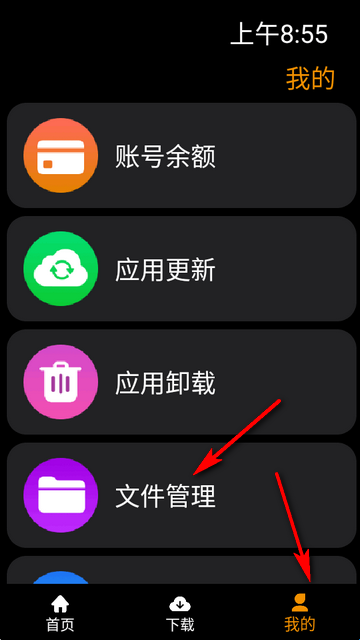 2、选择文件管理进入。进入后可以看到已下载的应用文件存储位置。