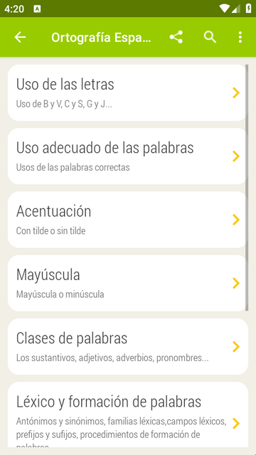 西班牙人自己都在使用的一款很专业的西班牙语学习软件,Ortografía Espa?ola安卓专业版,下载安装即可免费使用所有功能,操作简洁,整合了5000多个单词和示例,可以从0开始学习,有兴趣的朋友下载试试,软件界面都是西班牙语。