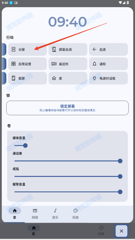 5、在行动处选择分屏按钮。