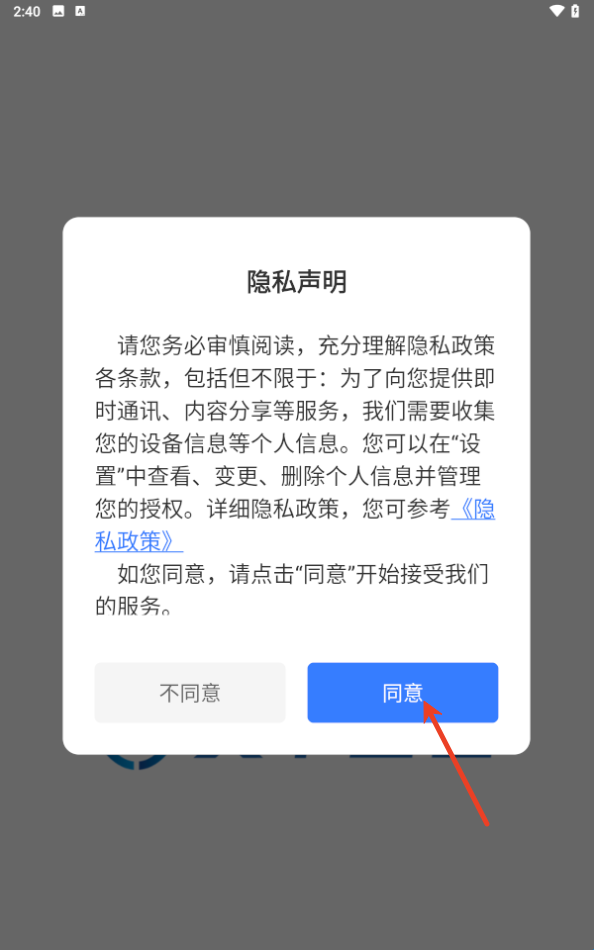 1、在本站下载APP,之后阅读隐私协议点击“同意”。