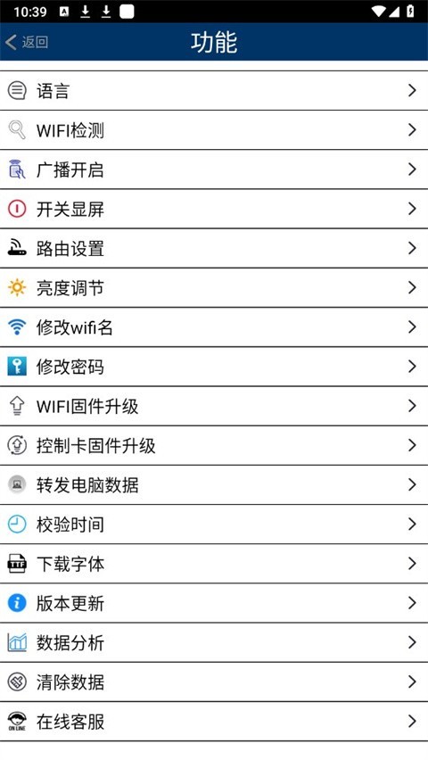 4、本软件通过手机WIFI与威利普控制卡进行交互,完成对LED的控制,使LED屏在手机端进行控制,高速高效稳定的数据发送,对LED的控制进入轻便的时代。