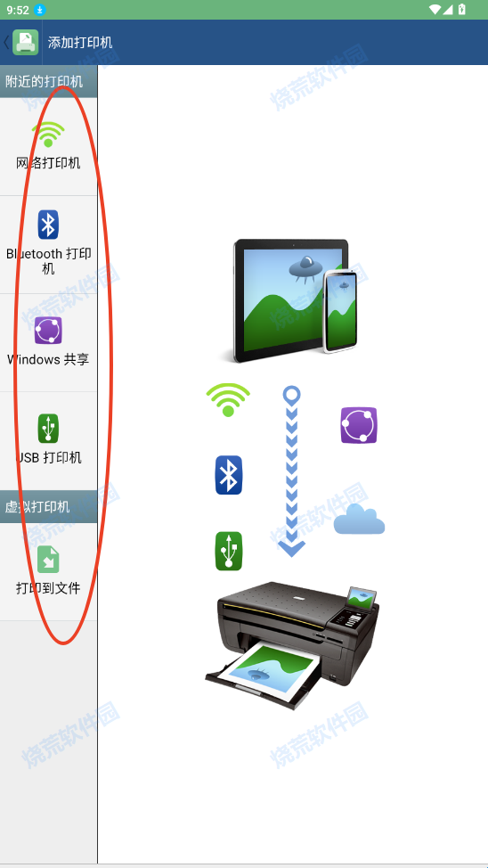 1、选择添加打印机,支持四种连接方式。