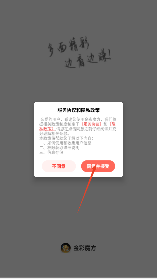 1、在烧荒下载好“金彩魔方”进入同意用户协议