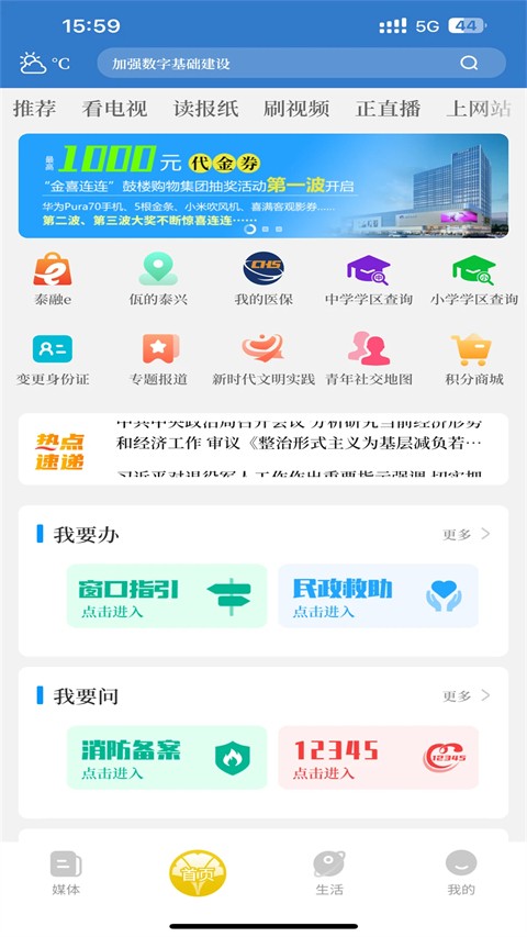 1、打开智慧泰兴App,媒体板块可以看各种各样的要闻