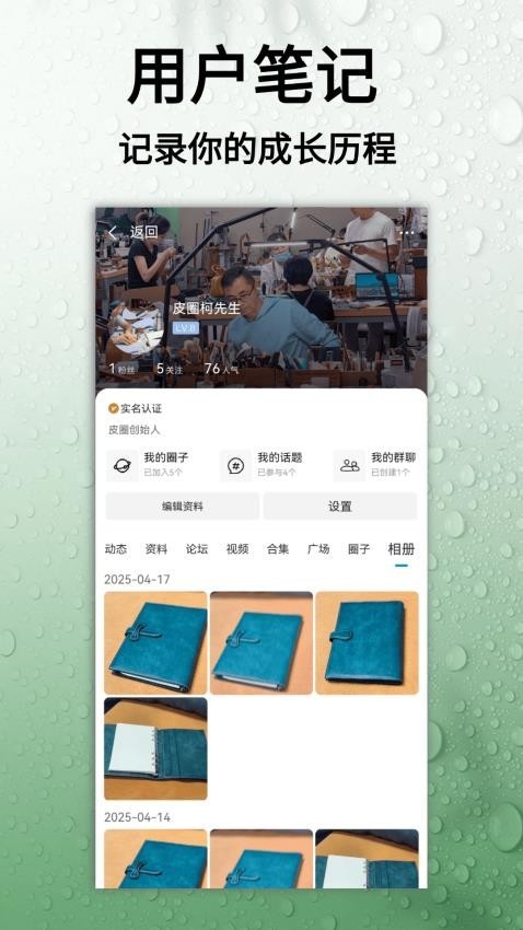 4、圈子发布:可在线编辑圈子动态发布,和大家分享自己的手工皮具产品,并能结识更多的人;