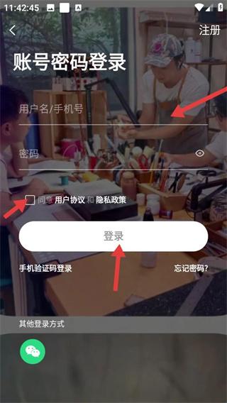 3、在登录页勾选同意用户协议和隐私政策再输入账号密码、手机验证码或登录,最后点击登录即可。