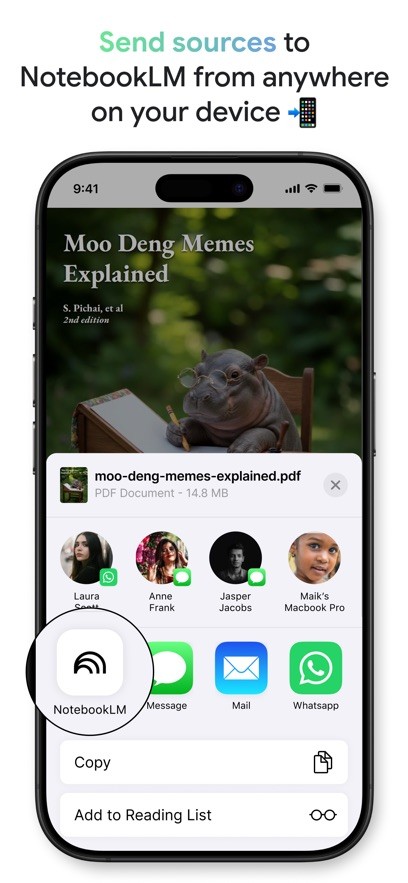 4、多模态内容生成:核心亮点功能“音频概述”可将文档转化为双人AI主播对话式播客,支持80多种语言,适配通勤、运动等不便阅读的场景;同时能一键生成PPT大纲、信息图表、FAQ、时间轴等实用成果,加速内容产出。