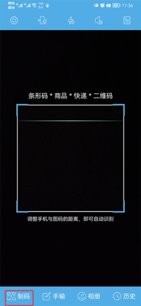2、制码:如生成商品,将要制作码的信息填入框后,点击右上角二维码图标
