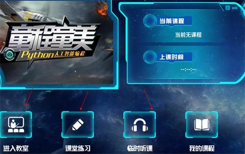 3、登录软件成功后,在软件页面有“进入教室”,“课堂学习”,“临时听课”,“我的课程”四大功能。