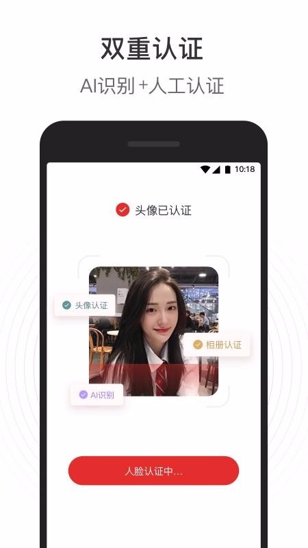 2、进行AI识别,让识别更专业,提高身份信息的真实性,给你更真实的交友体验,更放心;