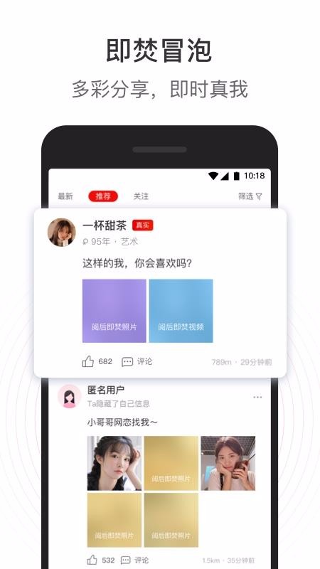 6、阅后即焚的照片和视频让你的订单观看体验更舒适,让冒泡更简单,将真实的自己进行展示;