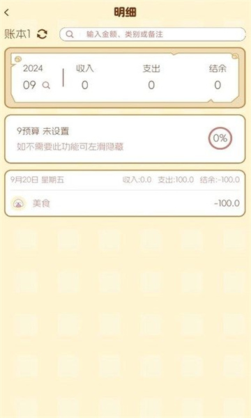 2、在这里,用户能够看到自己的收入来源和支出类型,并且可以看到结余数量;