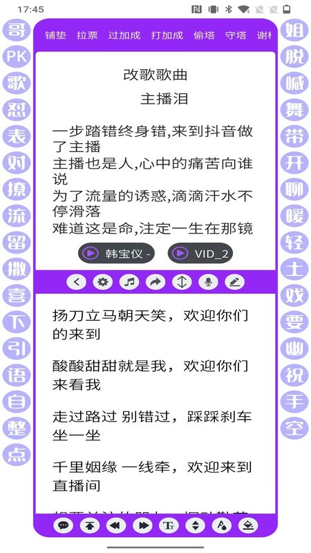 播满易,娱乐主播必备神器。还在为直播时忘词、冷场而烦恼吗?还在为回应观众和互动而手忙脚乱吗?播满易,一款专为解决这些问题而生的直播软件,即将改变你的直播体验!播满易自带海量直播话术,还支持上传自己喜欢的话术和舞蹈视频等等,播满易,全方位助力你的直播之路,无论是新手小白还是经验丰富的主播,都能从中受益。快来下载播满易,开启你的直播新时代,创造属于你的直播高光时刻!