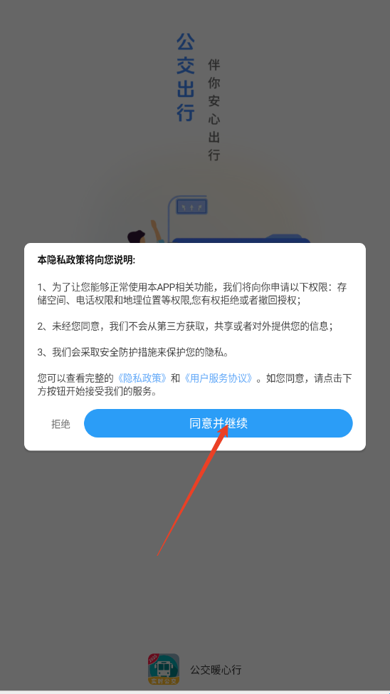 1、在烧荒下载好“公交暖心行”点击进入,同意用户权限