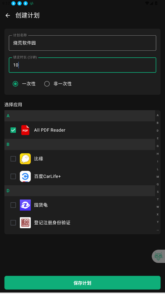2、选择计划名称,时间和应用;