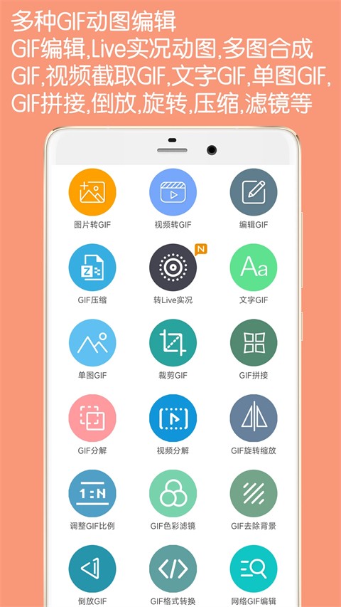 1、编辑GIF:可给gif添加贴纸、文字、截图、网络截图、gif图、涂鸦,调整范围,裁剪画面大小,倒放、调速;