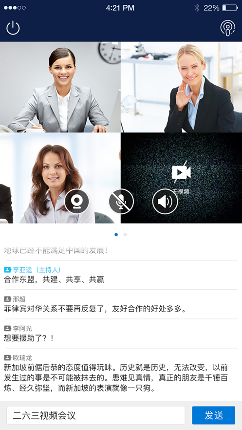 2、简单易用:一键发起会议、智能布局、语音激励以及强大的会议控制与管理。