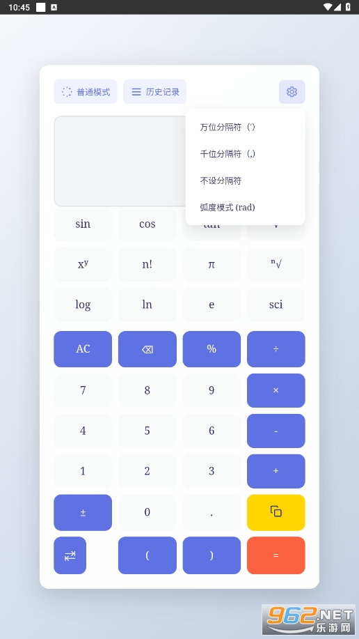 科学计算模式无需横屏,不用切换反向即可普通模式,科学模式无缝切换。