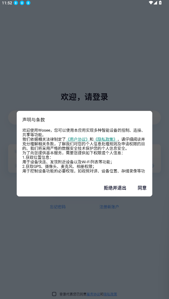 2、获取权限后会来到登录界面,没有账号先注册一个。