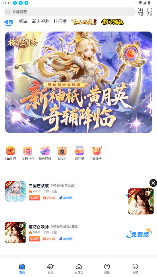 灵猫游戏app是一款实用的福利游戏盒子软件,汇集了多种题材的手游,包括GM、仙侠、二次元、三国、传奇等,为不同类型的玩家提供丰富的游戏选择,同时还拥有超多福利折扣可以领取,感兴趣就快来下载吧!