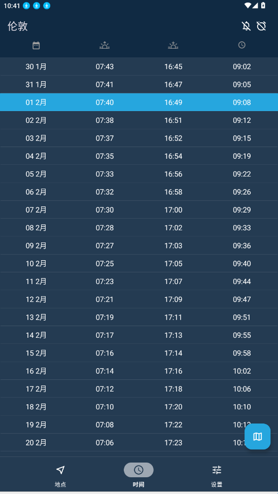 2、进入软件可自由选择不同日期的日出日落时间。