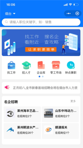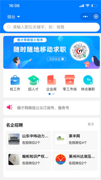 1、海量职位任您选,优秀人才等你来,专为烟台本地用户打造的人才招聘平台;