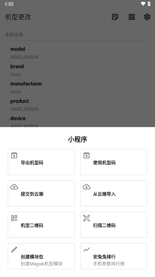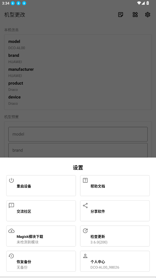 机型更改app是一款免root修改手机型号软件,用户可以使用该软件对个人手机型号进行轻松修改,无需root,点击导出,复制弹出的这串机型代码,确认更改,然后重启手机就可以替换手机型号了,操作简单,有需要的小伙伴们快来下载体验吧!