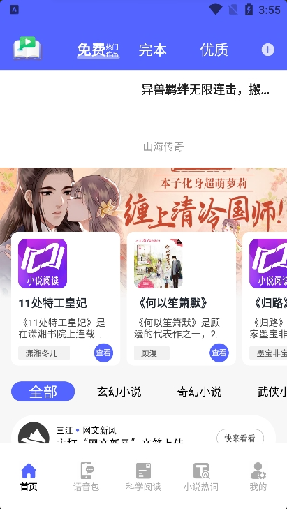 2、来到首页用户就可以浏览到各类型的小说