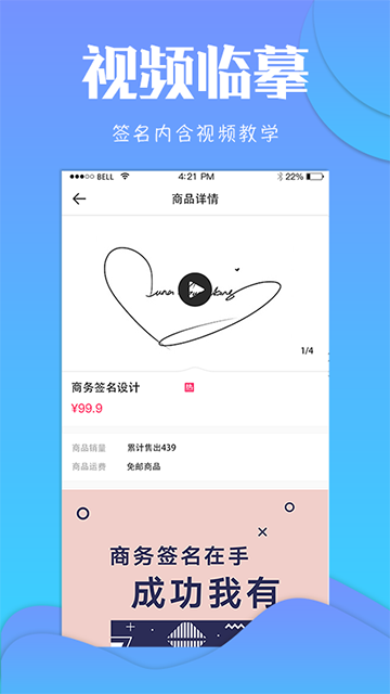 专属签名定制可以选择自己个性化定制签名,只需要你在APP上面简单的编辑,就可以生成专属于你独特风格的签字,还有大师在线为你定制签名,还有学习视频,俗话说字如其人,可以在签名上面给人好印象。可以将自己的签名生成卡片的模式,就像是名片一样,可以分享给别人,还可以简单的将签名P图在重要的照片上,有需要的用户可以下载试试看!