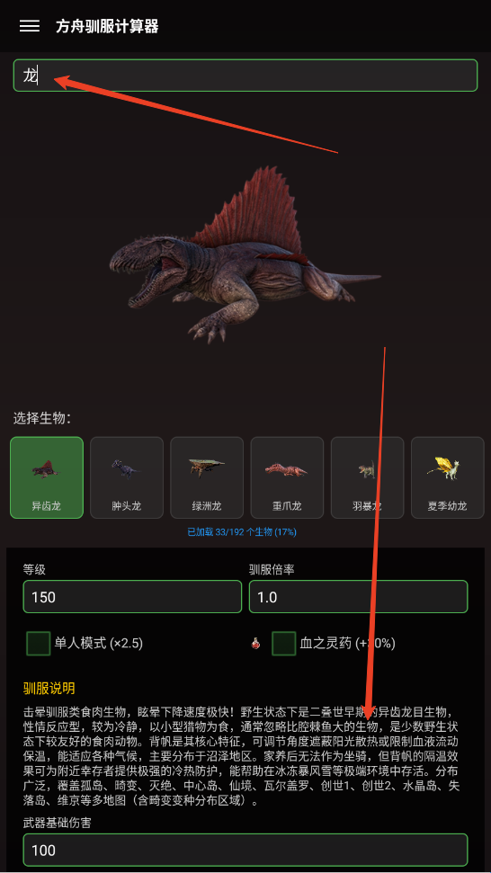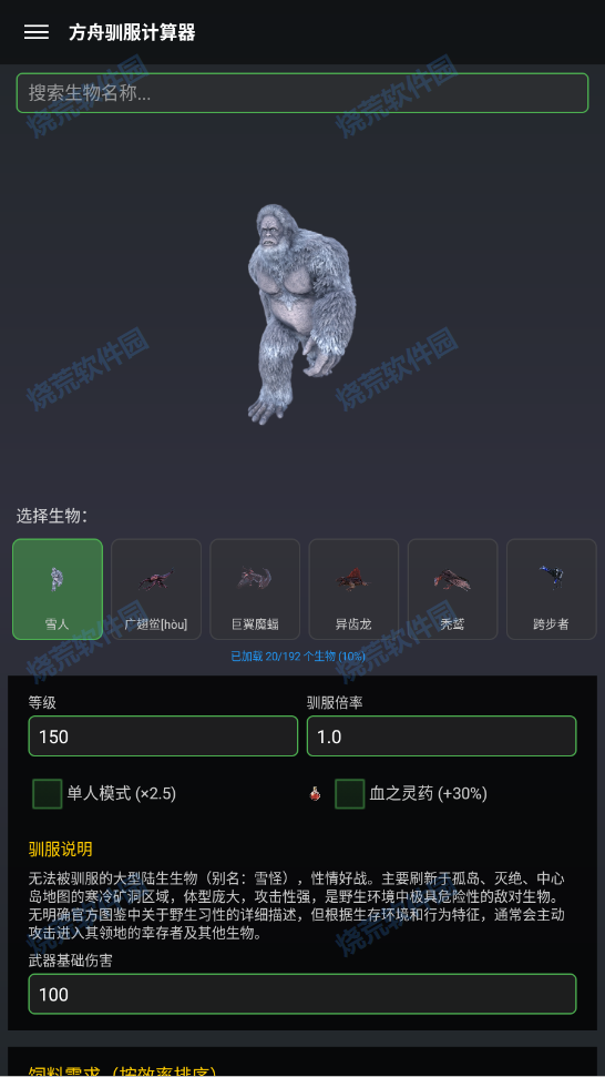 支持快速切换不同恐龙及食物组合,方便玩家优化驯服策略。