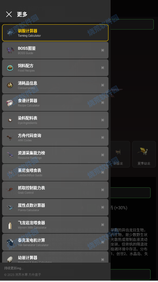 苏苏方舟盒子app是一款专为方舟生存进化推出的游戏助手,虽然不是官方出品,但是功能全面,包括驯服计算器,BOSS图鉴,饲料配方,消耗品信息,方舟代码查询等一系列功能,点开即可使用,没有广告打扰。